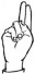 На ћирилици написано РАДНА ШУЛОВИЋ састоји се из 12 слова [?]. Исписано ћириличном једноручном азбуком за глувонеме: